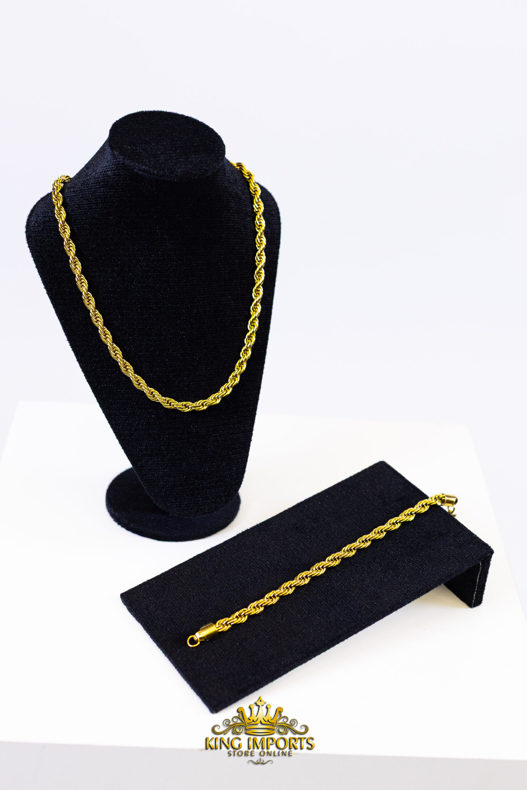 Com a presença marcante dos elos Baianos de 11mm, este conjunto banhado a Ouro 18k é para quem não tem medo de ousar. O design torcido e robusto garante um visual de impacto, sinônimo de poder e estilo.